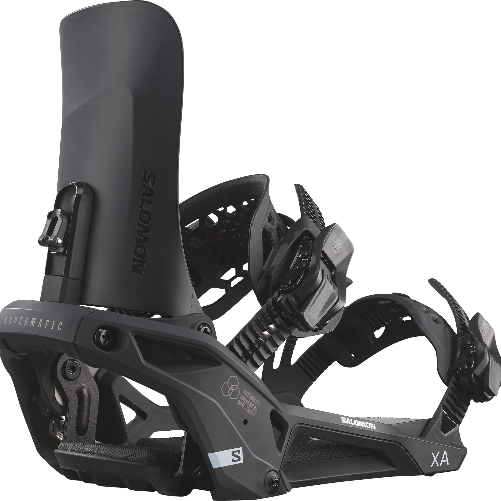 Salomon XA Supermatic is the world’s first universal step-in snowboard binding that works with any regular snowboard boots. It merges the precise feel of traditional strap bindings with the speed and convenience of step-in technology – without the need for special boots.